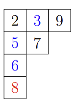 杨表(Young tableau)是通过用取自某个字母表的符号填充杨氏图的框来获得的,这通常需要是一个全序集和。填入的元素写作