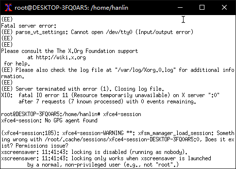 如果使用了 xfce4,可以在弹出的窗口中使用如下命令激活 xfce4: